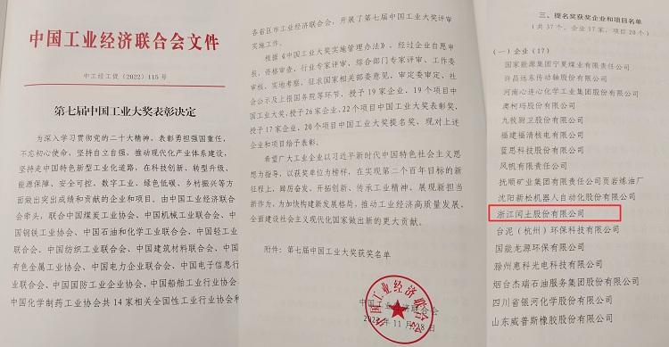 第七屆中國工業(yè)大獎(jiǎng)發(fā)布 閏土股份榮獲中國工業(yè)大獎(jiǎng)提名獎(jiǎng)