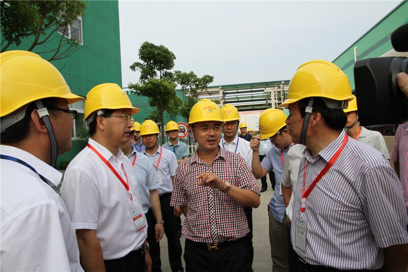 8月17日,由紹興市委書(shū)記陳金彪(左三)帶隊(duì)的督查組到閏土生態(tài)工業(yè)園內(nèi)的閏土新材料公司督查安全生產(chǎn)工作。陳金彪書(shū)記一行深入生產(chǎn)一線(xiàn),了解企業(yè)危化品的儲(chǔ)存、使用情況,詳細(xì)詢(xún)問(wèn)了危化品的物理化學(xué)特征、緊急處置辦法和應(yīng)急預(yù)案,并聽(tīng)取了企業(yè)負(fù)責(zé)人關(guān)于生產(chǎn)工藝流程的介紹。陳書(shū)記對(duì)閏土新材料公司的安全生產(chǎn)和危化品管理工作表示認(rèn)可,并囑咐企業(yè)一定要時(shí)刻緊繃安全生產(chǎn)這根弦,企業(yè)在抓效益的同時(shí),更要抓好安全、環(huán)保工作。紹興市副市長(zhǎng)楊文孝、紹興市上虞區(qū)區(qū)委書(shū)記孫云耀、紹興市上虞區(qū)區(qū)委常委、杭州灣上虞經(jīng)濟(jì)技術(shù)開(kāi)發(fā)區(qū)管委會(huì)主任胡文煒、紹興市上虞區(qū)副區(qū)長(zhǎng)王永表等領(lǐng)導(dǎo),閏土股份副董事長(zhǎng)阮加春、閏土股份副總經(jīng)理阮光棟、閏土新材料公司總經(jīng)理周杰文等一起陪同。