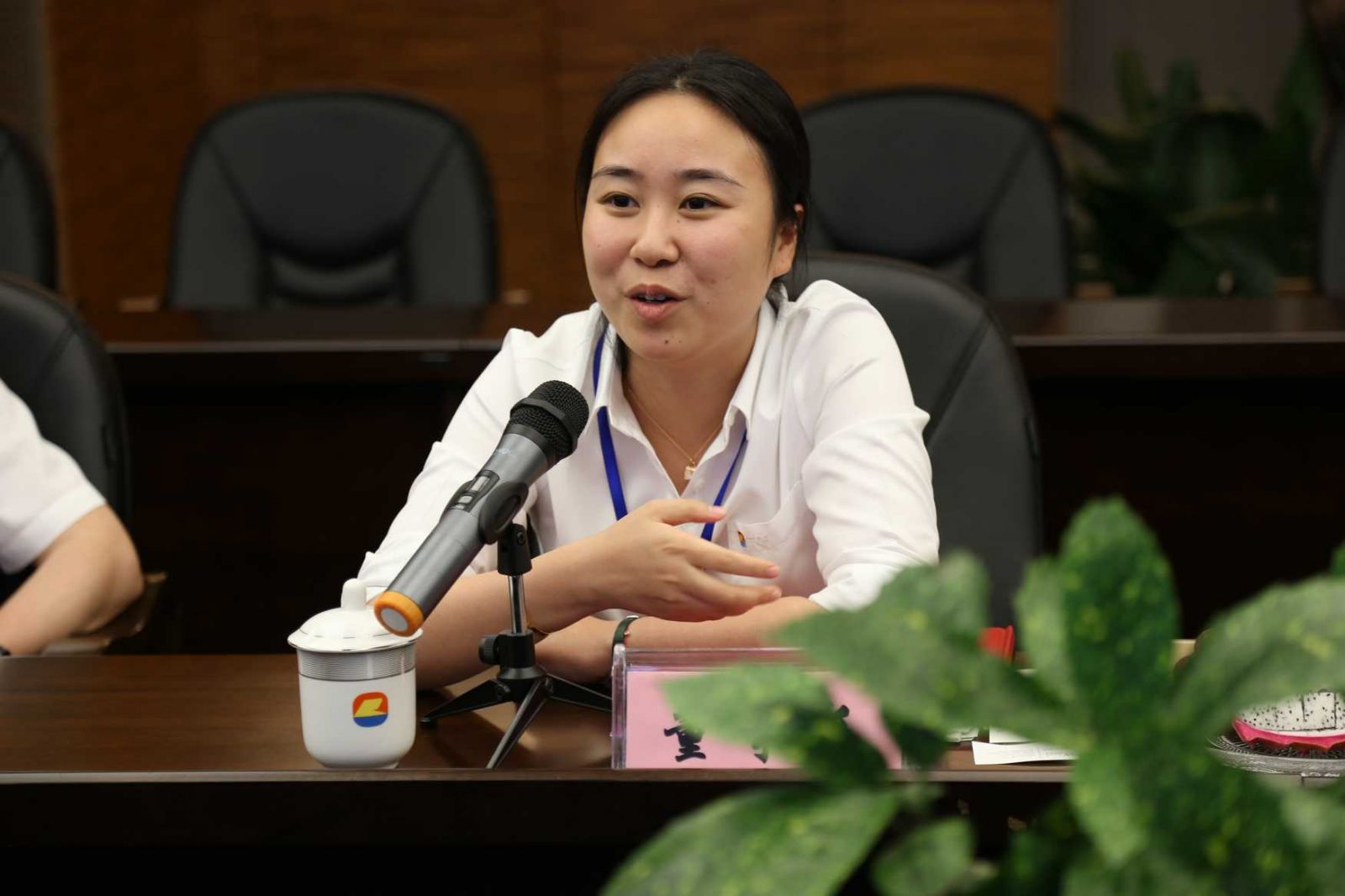 阮靜波董事長(zhǎng)在會(huì)上與來訪客人互動(dòng)交流